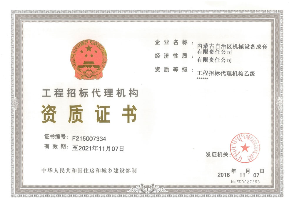 工程招標(biāo)代理乙級資格證書
